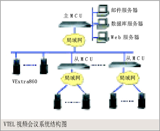 。。圖中各會議節(jié)點均配置一臺VTEL VExtra視頻會議終端,通過E1電路接入網(wǎng)絡(luò)中心的Meta