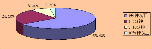 “彩話”業(yè)務主要應用是主叫方為了通話中的和諧溝通而設置的,因此它與通話時長具有正相關性,一般短暫的工作式或通知式的通話無須主叫方設置背景音效。根據信息產業(yè)部提供的《電信資費聽證會資料》,國家統(tǒng)計局對全國24個大、中、小城市電話用戶通話時長進行了調查,調查結果見圖1所示。
