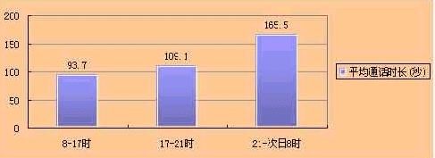 在同一調查中還有電話用戶在一天內不同時段平均通話時長,具體情況見圖2所示。