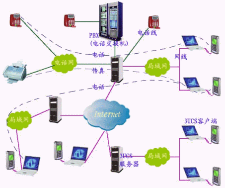 3UCS秉承便捷溝通、高效辦公之理念,將企業(yè)語(yǔ)音通訊、數(shù)字通訊整合在同一通訊線上,將電話(huà)交換機(jī)功能延伸至IP網(wǎng)絡(luò),電話(huà)與傳真線路共享,有效利用線路資源,無(wú)縫連接三個(gè)網(wǎng)絡(luò)(電話(huà)網(wǎng)、局域網(wǎng)、因特網(wǎng)),將電話(huà)交換機(jī)、傳真服務(wù)、消息等功能集于一身, 利用現(xiàn)有的局域網(wǎng)、因特網(wǎng)接打電話(huà),收發(fā)傳真。