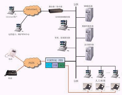 通過(guò)這臺(tái)服務(wù)器,用戶可以用電腦通過(guò)Internet網(wǎng)絡(luò)訪問(wèn)呼叫中心系統(tǒng),系統(tǒng)將通過(guò)網(wǎng)站提供法律法規(guī)查詢、辦事指南、部門職能介紹、招商引資、投資指南、政府公告、網(wǎng)上投訴、市長(zhǎng)信箱、網(wǎng)上投訴處理結(jié)果查詢、城市服務(wù)指南等服務(wù)。