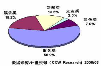 2006年,IVR業(yè)務(wù)的發(fā)展已經(jīng)具備了良好的外部條件。首先,具有龐大的潛在用戶群。有關(guān)統(tǒng)計(jì)顯示,截至2005年11月,中國移動(dòng)用戶數(shù)量達(dá)到3.88億,固定電話用戶數(shù)量達(dá)到3.51億,其中無線市話用戶數(shù)量達(dá)到8622萬。其次,市場(chǎng)容量急劇膨脹;再次,業(yè)務(wù)收入快速增長;最后,IVR不受手機(jī)型號(hào)的限制,潛在用戶的普及率極高。這些使得IVR具有良好的發(fā)展?jié)摿,?jì)世資訊(CCW Research)認(rèn)為,IVR是繼短信(SMS)之后的又一座大型金礦。