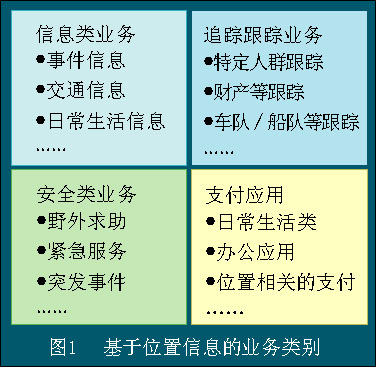 我們可以看到,移動(dòng)運(yùn)營(yíng)商提供的基于位置信息的業(yè)務(wù)涉及從安全業(yè)務(wù)到付賬、信息追蹤、導(dǎo)航以及數(shù)據(jù)/視頻集成應(yīng)用等諸多方面。目前我們已經(jīng)能夠看到這些業(yè)務(wù)形式,但是