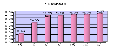 根據(jù)我們的客戶調(diào)查(每月一次),客戶對(duì)服務(wù)人員的業(yè)務(wù)能力的滿意度得到持續(xù)改進(jìn)。具體數(shù)據(jù)如下圖: