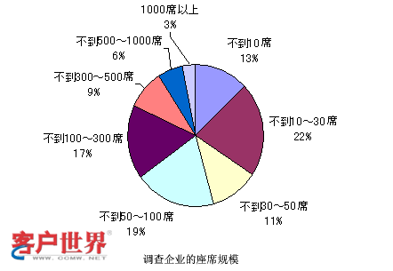 那么和剛才雜志社調(diào)查的結(jié)果是一樣的。這個數(shù)字又是政府方面調(diào)查的結(jié)果,他們調(diào)查的很細,對很小規(guī)模的,比如說1-4人的呼叫中心都進行了調(diào)查,并且看到這種小規(guī)模的呼叫中心還占有很大的比例?梢钥吹剑10人以下的呼叫中心可能在這個結(jié)果里面占了基本上高于50%,所以可能得到一個結(jié)論,就是在日本小型的呼叫中心非常多。