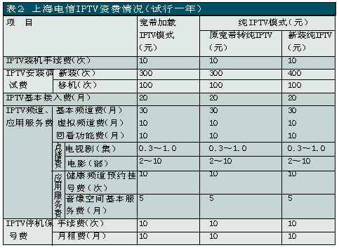 上海電信是國(guó)內(nèi)關(guān)注并切入IPTV業(yè)務(wù)較早的電信運(yùn)營(yíng)商之一,自2005年就開始積極測(cè)試和試驗(yàn)。此次上海電信在全上海市范圍內(nèi)推出IPTV業(yè)務(wù),被業(yè)界看作是“中國(guó)IPTV規(guī)模商用的新紀(jì)元”。除了影視節(jié)目收看、視頻內(nèi)容點(diǎn)播、時(shí)移功能外,上海電信的IPTV服務(wù)還包括時(shí)事新聞、遠(yuǎn)程醫(yī)療、視頻房產(chǎn)信息、餐飲信息、天氣預(yù)報(bào)、票務(wù)查詢等信息服務(wù)以及可視電話、IPTV游戲等個(gè)性化應(yīng)用。其中IPTV的直播頻道有58個(gè),視頻點(diǎn)播可選節(jié)目量達(dá)3000小時(shí)以上。另外,上海電信還推出了影像空間和電視大黃頁(yè)等應(yīng)用服務(wù),攝像愛好者可以利用“影像空間”應(yīng)用平臺(tái)上傳自己的視頻作品,然后通過IPTV機(jī)頂盒在自家的電視上欣賞自己的得意之作,并可以與已安裝IPTV的親朋好友一起分享;電視大黃頁(yè)可實(shí)現(xiàn)對(duì)各類行業(yè)、企事業(yè)單位信息資訊的搜索查詢。