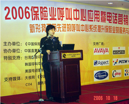 。。2006年10月18日,2006保險業(yè)呼叫中心應(yīng)用暨電話營銷高峰研討會在北京天鴻科園大酒店隆重召開,以下是K1主題演講實錄: