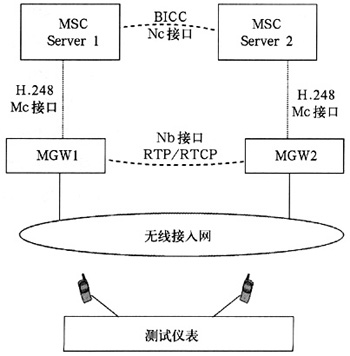 主要是通過測試儀表模擬兩個NGN網(wǎng)絡(luò)的終端用戶,首先通過同NGN網(wǎng)絡(luò)的信令交互建立起這兩個用戶之間的呼叫連接,然后在該連接上模擬發(fā)送和接收測試語音流,通過對收發(fā)語音信號的比較,來測試出端到端的語音質(zhì)量,并且能提供PESQ值和時延值,圖3為主動式語音質(zhì)量測試的結(jié)構(gòu)圖。
