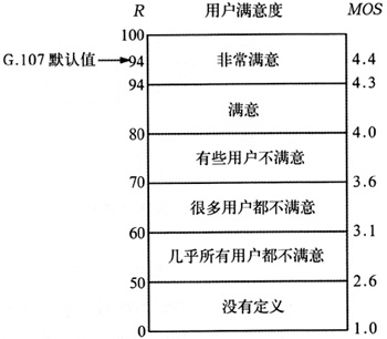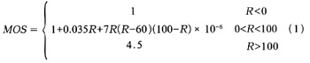 。5)MOS值,MOS模型是主觀評價方法,根據(jù)E模型MOS值是通過R值計(jì)算得到的。MOS值是1~5之間的數(shù),1是最差的,5是最好的[6]。R和MOS值的關(guān)系式如下所示: