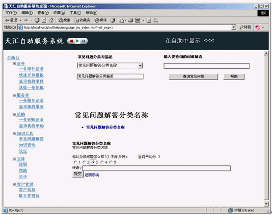 但是,隨著組織轉(zhuǎn)向自助服務(wù),對復(fù)雜維護(hù)過程的需要將隨之出現(xiàn)。如果要采用自助服務(wù),必須從一開始就做得很好。上圖為人性化的天匯幫助臺系統(tǒng)的自助服務(wù)功能界面設(shè)計。