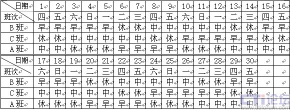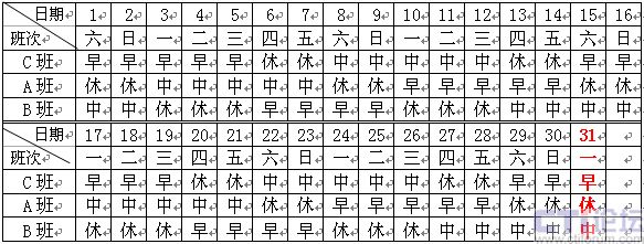 1)正常日班人員:主要的工作時間是8:00~16:00,該班組人員是固定在這一時間段內工作,不另作安排。