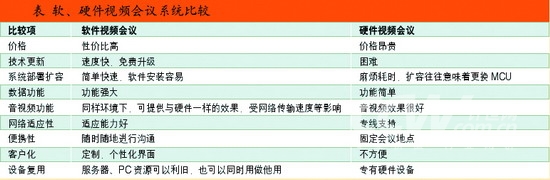 當(dāng)硬件和軟件視頻會議系統(tǒng)這兩種選擇擺在用戶面前時,兩者特點分明,但要走哪條路,還需要分析用戶自身的需求,以“適用”作為標(biāo)桿。