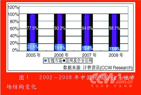 目前,中國視頻會議系統(tǒng)產(chǎn)品主要是以基于專線市場、基于混網(wǎng)市場及Internet軟件視頻會議系統(tǒng)市場兩大類組成。