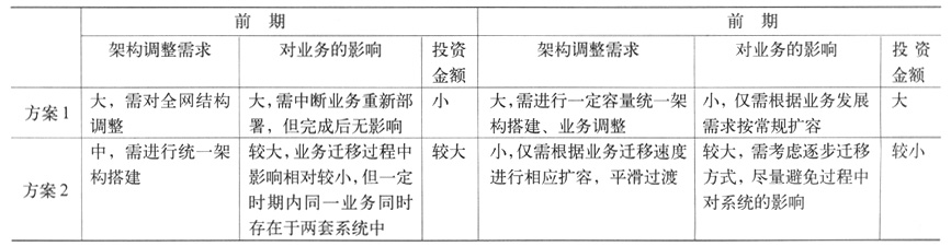在實際規(guī)劃中,可根據(jù)現(xiàn)有業(yè)務和網(wǎng)絡情況以及未來增值業(yè)務的發(fā)展規(guī)劃、并結合投資額綜合考慮,選擇不同的網(wǎng)絡演進策略。在規(guī)劃投資金額較大,及建設、配合力量足夠情況下可選擇方案1;考慮業(yè)務運行穩(wěn)定性及改造復雜度,建議采用方案2根據(jù)業(yè)務發(fā)展情況平滑過渡。