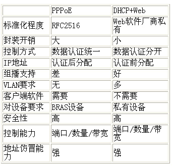 當前在寬帶網中使用的最主要認證技術包括兩類,即PPPoE和DHCP(或者DHCP+Web)技術。