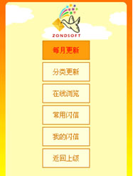 如果想在軟件中安裝更多的閃信動畫,還可以通過軟件的:“更新閃信“里的分類更新、在線瀏覽選項選擇更新更多的閃信動畫;蛘呤堑卿洝笆謾C閃信網(wǎng)www.13Flash.com”網(wǎng)站瀏覽下載更多的動畫內(nèi)容。網(wǎng)站還提供了閃信動畫的收藏定制功能,可以根據(jù)自己的喜好定制自己喜愛的閃信動畫作為收藏,更方便的發(fā)送給朋友具有個性的閃信