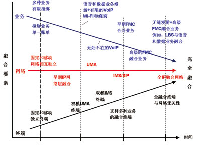 從實現(xiàn)過程來看,運營商一般都以業(yè)務(wù)捆綁為切入點,然后逐步實現(xiàn)業(yè)務(wù)融合和終端融合。