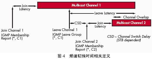 。6)頻道重疊時(shí)間:如果系統(tǒng)頻道切換采取接收到所請求頻道的組播包之后才停止原頻道的組播包的方式,則頻道重疊時(shí)間即指接收到所請求頻道的第一個(gè)組播包與接收到原頻道的最后一個(gè)組播包之間的時(shí)間間隔。