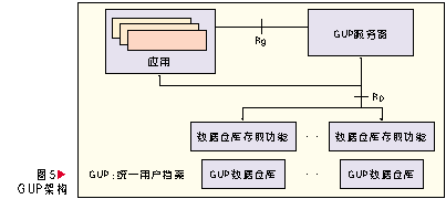 GUP中一個用戶相關(guān)的數(shù)據(jù)由多個數(shù)據(jù)組件構(gòu)成,每個組件又可以包含多個數(shù)據(jù)單元。在網(wǎng)絡(luò)中用戶數(shù)據(jù)每個數(shù)據(jù)組件只有一個主實(shí)例,但是可以有多個復(fù)制實(shí)例。用戶數(shù)據(jù)以組件為單元可以存放在不同的網(wǎng)絡(luò)實(shí)體中,應(yīng)用可以通過統(tǒng)一的訪問入口以標(biāo)準(zhǔn)接口訪問所有授權(quán)的數(shù)據(jù),這個入口功能由GUP