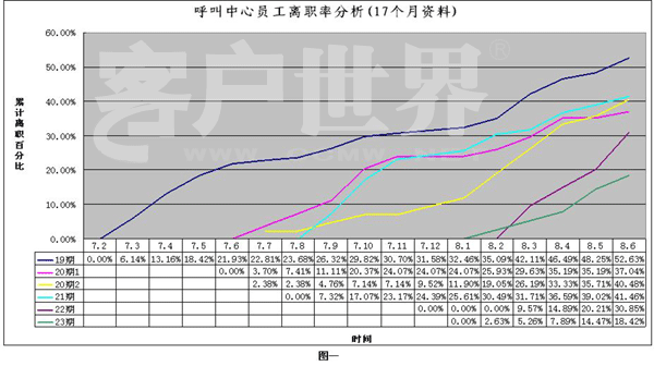 員工流失率控制,在行業(yè)內(nèi)困惑著不少中心領(lǐng)導(dǎo)。業(yè)內(nèi)專家集中精力,采取各種措施,試圖減少流失率對服務(wù)中心成本的影響。為此,本項(xiàng)目組對某客戶服務(wù)中心員工5期新員工進(jìn)行了17個月的數(shù)據(jù)采集、分析,涉及近200名離職員工的信息分析。從時(shí)間變量角度,對新員工內(nèi)心體驗(yàn)進(jìn)行闡述,并分析此考察期間,員工負(fù)性情緒、工作事件、經(jīng)歷體驗(yàn)與促使員工離職行為之間的關(guān)系,建立針對問題的性質(zhì),制定干預(yù)策略。本設(shè)想建立在針對員工培訓(xùn)體系進(jìn)行優(yōu)化,減少已發(fā)現(xiàn)的新員工離職原因?qū)θw員工的影響,從而實(shí)際的減少員工流失、工作低績效現(xiàn)象,達(dá)到提高組織績效的目的。
