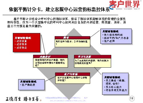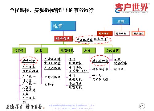 第一,是依據(jù)平衡計分卡原理,建立了客服中心運(yùn)營指標(biāo)監(jiān)控體系,以實現(xiàn)呼叫中心的規(guī)模化經(jīng)濟(jì)運(yùn)營。