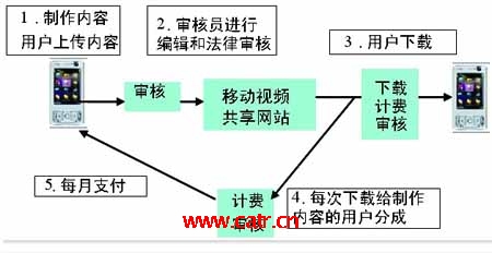 由于UGC(用戶產生內容)類業(yè)務的產生,內容類業(yè)務出現(xiàn)了創(chuàng)新的商業(yè)模式,根據(jù)內容下載情況與內容提供者之間進行分成。和黃3公司就推出了這樣的盈利模式,我國移動視頻共享網(wǎng)站也在向這個方向探索。