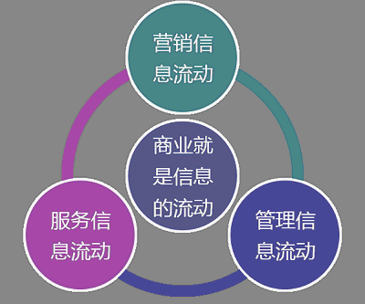 我們把商業(yè)信息化的需求特征進(jìn)行分析,用以下三種信息互動(dòng)概括:營銷信息互動(dòng)、管理信息互動(dòng),服務(wù)信息互動(dòng)。