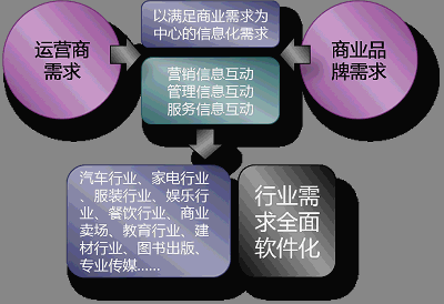 基于這個(gè)需求,那么運(yùn)營商更需要的是針對(duì)行業(yè)版的解決方案,有許多的行業(yè)正在期待獲得這樣的商業(yè)信息化平臺(tái),包括:汽車行業(yè)、家電行業(yè)、服裝行業(yè)、娛樂行業(yè)、餐飲行業(yè)、商業(yè)賣場、教育行業(yè)、建材行業(yè)、圖書出版、專業(yè)傳媒等。