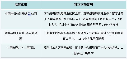 1)電信重組對IPTV的影響