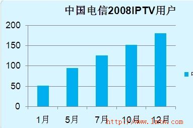 從08年初的51萬用戶到年末的180萬,中國電信IPTV即使面臨政策的限制,仍獲得了極大的發(fā)展。IPTV作為中國電信的戰(zhàn)略新興業(yè)務(wù),作為中國電信切入視頻服務(wù)領(lǐng)域、帶動寬帶業(yè)務(wù)持續(xù)發(fā)展的重要種子業(yè)務(wù),其價值正被日益認(rèn)可。
