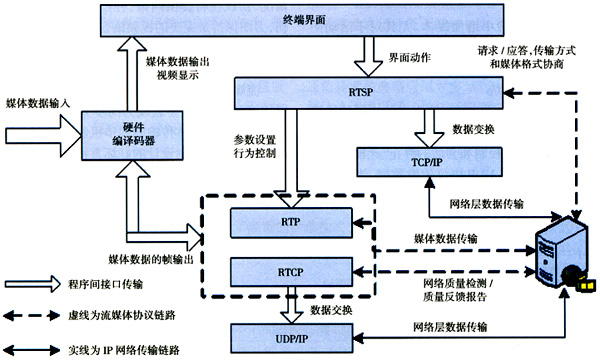 RTSP和RTP/RTCP協(xié)議棧組成整個流媒體協(xié)議棧的核心部分,他們各自的控制機制是需要根據(jù)無線移動網(wǎng)絡的實際情況和媒體編碼格式統(tǒng)籌設計,在協(xié)議中是沒有硬性規(guī)定的。