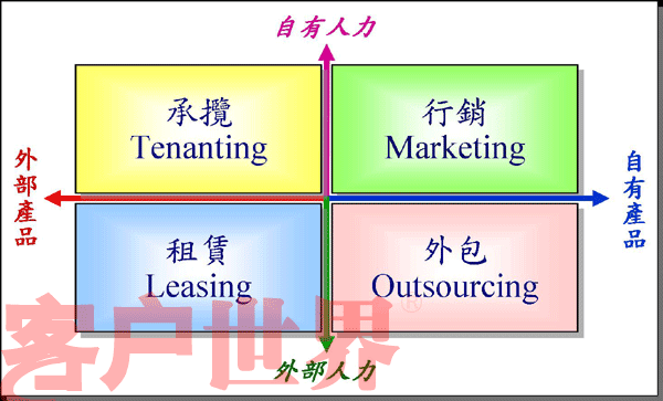Matrix)就是由內(nèi)、外部的產(chǎn)品與人力所組合成的四個營運領(lǐng)域(如圖五)。