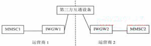 為實現(xiàn)不同運營商的用戶之間相互發(fā)送和接收多媒體消息,需要在不同運營商的多媒體消息中心之間實現(xiàn)互通。該互通需要多媒體消息中心(MMSC)與互通設(shè)備(IWGW)的連接、IWGW之間的連接實現(xiàn)。當一個運營商的網(wǎng)絡(luò)用戶向另一個運營商的網(wǎng)絡(luò)用戶發(fā)送多媒體消息時,該多媒體消息經(jīng)發(fā)送方用戶歸屬的MMSC通過IWGW提交給接收方用戶歸屬的多媒體消息中心,由接收方用戶歸屬的MMSC向其網(wǎng)內(nèi)用戶發(fā)送。網(wǎng)間多媒體消息業(yè)務互通網(wǎng)絡(luò)結(jié)構(gòu)中主要包括多媒體消息中心(MMSC),互通設(shè)備(IWGW)以及相關(guān)的輔助設(shè)備等。IWGW是指不同運營商網(wǎng)絡(luò)之間的多媒體消息互通設(shè)備。網(wǎng)間多媒體消息互通設(shè)備間的互聯(lián)可以由兩個運營商的IWGW直接連接,也可以經(jīng)過第三方互通設(shè)備轉(zhuǎn)接(見圖1、圖2)。
