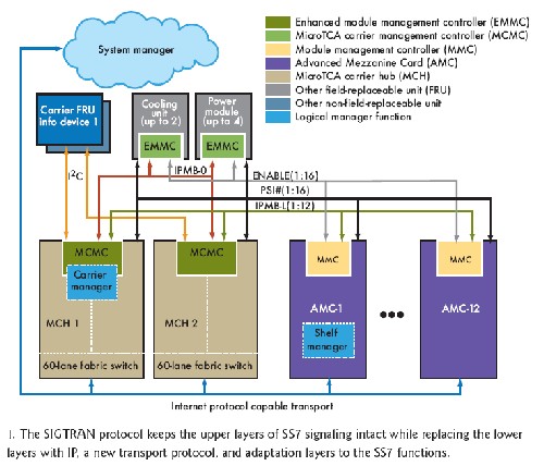 信令網(wǎng)關(guān)用于橋接下一代IP網(wǎng)絡(luò)和傳統(tǒng)的包交換電話網(wǎng)絡(luò)(PSTN),處理的主要是呼叫建立、控制和計費等信號。網(wǎng)關(guān)設(shè)計要求融合IP協(xié)議、傳統(tǒng)的交換電路協(xié)議、操作系統(tǒng)、管理以及高可靠性的硬件系統(tǒng)設(shè)計。MicroTCA、AdvancedMC硬件和現(xiàn)成軟件可以提供構(gòu)建模塊用于開發(fā)獨立的信令網(wǎng)關(guān)設(shè)計,這樣設(shè)計出來的網(wǎng)關(guān)很容易隨著IP電話需求的增加而進一步擴展。