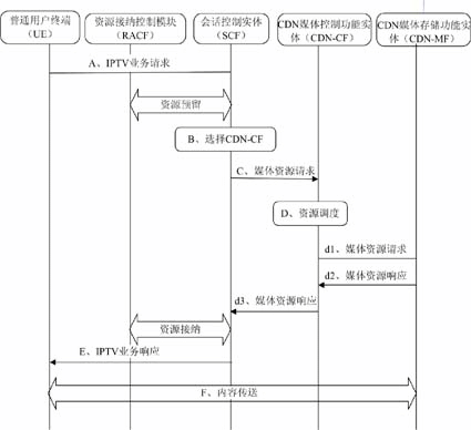 。5)CDN媒體存儲(chǔ)功能實(shí)體(CDN-MF):負(fù)責(zé)向IPTV業(yè)務(wù)用戶傳送媒體內(nèi)容。