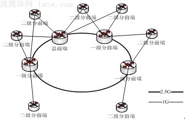 某廣電現(xiàn)有網(wǎng)絡(luò)環(huán)境如下圖所示,總前端及其他一級(jí)分前端處于骨干光纖環(huán)網(wǎng)上,另有若干個(gè)二級(jí)分前端分別通過光纖雙上聯(lián)至骨干環(huán)網(wǎng)上的總前端或一級(jí)分前端中的兩個(gè)物理節(jié)點(diǎn)。所有物理節(jié)點(diǎn)均帶有一定數(shù)量的終端用戶。