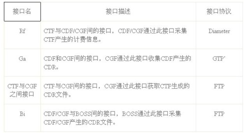 IMS離線計費相關(guān)接口及其對應(yīng)的協(xié)議要求參見表1。