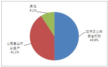 從細(xì)分市場(chǎng)來(lái)看,政府及公共安全機(jī)構(gòu)為最大的細(xì)分市場(chǎng),占總市場(chǎng)規(guī)模的49.8%,而且比重仍有上升趨勢(shì),公用事業(yè)行業(yè)客戶市場(chǎng)占比41.1%,其他客戶占9.1%。