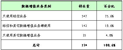 近七成手機(jī)用戶已使用過數(shù)據(jù)增值業(yè)務(wù),且主要使用的是短信業(yè)務(wù)