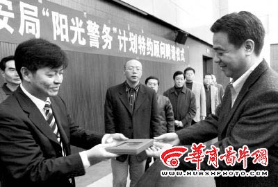 昨日下午2時(shí)許,重慶市公安局“陽光警務(wù)”特約顧問聘請儀式上,重慶市公安局副局長、政治部主任彭長健頒發(fā)了特約顧問聘書。重慶市社會(huì)科學(xué)院研究員孫元明等18人成為我市警方首批聘請的“陽光警務(wù)”特約顧問。他們將作為警方的“智囊團(tuán)”直接參與、監(jiān)督警務(wù)活動(dòng),聘任時(shí)間為兩年。