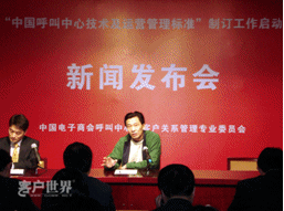 2月7日,中國電子商會呼叫中心與客戶關系管理專業(yè)委員會(CNCCA)在北京信息產(chǎn)業(yè)部萬壽路辦公區(qū)召開“中國呼叫中心技術及運營管理規(guī)范”制訂工作啟動新聞發(fā)布會。在京各主要新聞媒體高度關注在國家宏觀政策轉向服務外包的大背景下,呼叫中心中國標準的出臺將為產(chǎn)業(yè)的發(fā)展和國際競爭格局的變化帶來如何的影響。呼叫中心行業(yè)各知名廠商、運營商、服務提供商代表出席新聞發(fā)布會。會議同時發(fā)布了《2007年中國呼叫中心運營標桿管理報告》。