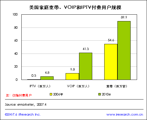 iResearch:美國(guó)家庭寬帶、VOIP和IPTV付費(fèi)用戶(hù)規(guī)模
