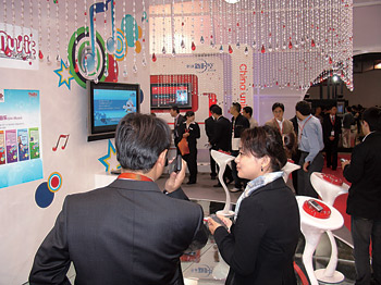 在通信展上,中國移動在展場核心區(qū)展示了面向2008年奧運會的奧運無線業(yè)務和全曲下載“音樂隨身聽”,中國聯(lián)通則重點展示了其最具特色的整首音樂下載業(yè)務,吸引了大批觀眾。許多觀眾還在中國移動和中國聯(lián)通無線音樂展臺前,現(xiàn)場聆聽各種動聽的歌曲,體驗無線音樂的魅力?梢哉f,手機音樂成為手機娛樂業(yè)務中最受人們關注的亮點。