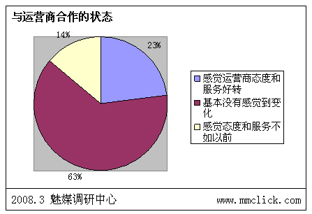 魅媒無線調(diào)研中心認為:由于前期政府以及運營商對SP行業(yè)的相關(guān)整頓效果明顯,相關(guān)的制度、措施以及管理系統(tǒng)上線后,SP違規(guī)的風(fēng)險已經(jīng)越來越大,行業(yè)自律狀態(tài)較之前有明顯的改善。但是由于部分的制度明顯存在矯枉過正現(xiàn)象,不少的措施嚴重影響到用戶的體驗,而且對SP管理一直出于消極的狀態(tài),需要不斷調(diào)整。