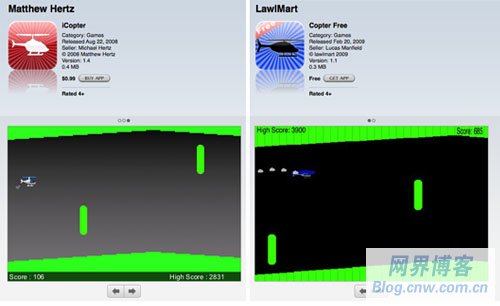 iCopter ,那么你也會喜歡免費(fèi)的 Copter ! 甚至還有與之對應(yīng)的另一種情況,開發(fā)者抄襲一個免費(fèi)應(yīng)用,然后把它做成付費(fèi)版——