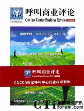 《呼叫商業(yè)評論》(Contact Center Business Review )是一本服務于呼叫中心行業(yè)企業(yè)高管人群的高端雜志,是CNCCA呼叫中心及客戶關(guān)系管理協(xié)會指定呼叫中心行業(yè)權(quán)威刊物,可作為高端客戶群體的行業(yè)指南,洞悉行業(yè)新舉措,法規(guī)新動態(tài)的風向標。