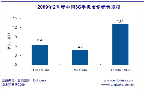 2009年第2季度中國3G手機(jī)市場(chǎng)整體銷量達(dá)到24.2萬