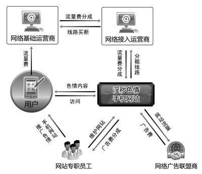 據中國之聲《新聞縱橫》11月27日7時30分報道,全國掃黃打非辦昨天(26日)公布調查報告,披露三種手機色情網站盈利模式,其中,電信運營商除了和增值服務商按3:7進行分成外,還會首取流量費。