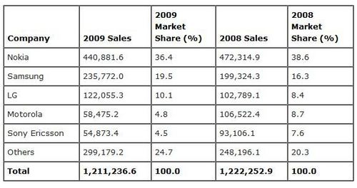 根據(jù)Gartner的數(shù)據(jù)顯示,去年共銷售出的智能手機達1.72億部,比前年上漲了24%,然而全世界手機的銷售總量卻并無起色(2008年為12.2億部,而2009年為12.1億部。在去年銷售的所有手機中,智能手機占14%,較2008(11%)年有所提升。iPhone盡管去年漲勢迅猛,只占去年各種手機銷售總量的2%。
