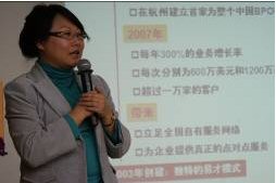 易才博普奧公司呼叫中心事業(yè)部總經(jīng)理袁靜女士首先做了歡迎致辭,對(duì)與會(huì)嘉賓的積極參與與光臨表示衷心的感謝。同時(shí),對(duì)易才BPO呼叫中心行業(yè)人才租賃解決方案做了精彩的講解和詮釋。